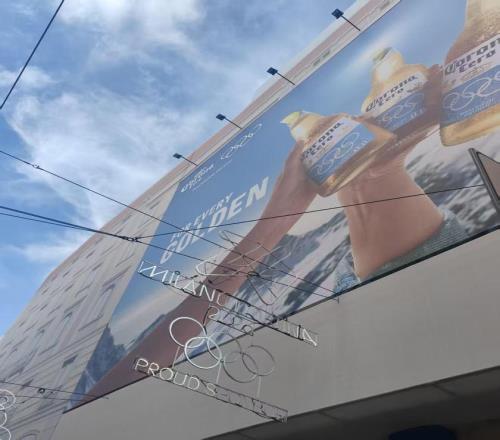 原则上,米兰市中心的建筑高度不能超过大理石构建的米兰大教堂,高楼不多,要抢到巨幅户外广告位并不容易,但奥运赞助商们还是找到一些明显的露出位置。TCL的巨幅户外广告牌背景是双板滑雪的画面,旁边的广告牌登出该公司旗下的空调、洗衣机等产品。三星、百威英博旗下科罗娜的冬奥主题户外广告牌也很大,画面展示了手机、啤酒。