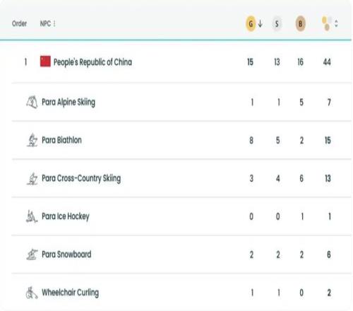 4年前的北京冬残奥会上,中国代表团以18金20银23铜的战绩,首次登顶奖牌榜。本届冬残奥会,中国运动员在多个项目上取得显著进步。冬季两项比赛中,男子站姿组、男女视障组实现了金牌突破,中国代表队共夺得8枚金牌。单板滑雪队在8个小项中夺得2枚金牌。越野滑雪队赢得3枚金牌。轮椅冰壶混双项目的夺冠之路,更是体现了中国轮椅冰壶的顶尖水平。