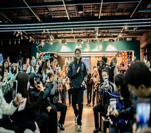 而在F1中国大奖赛期间,阿迪达斯又把另一种速度带入城市中心。南京东路品牌中心迎来了梅赛德斯车队车手乔治·拉塞尔的粉丝见面活动,现场陈列着车队联名产品与赛车主 题装置,赛车模拟器也吸引了大量车迷参与体验。赛车文化从赛道进入城市消费空间,也让原本只存在于比赛中的极限速度成为公众可以参与和观看的城市体验。