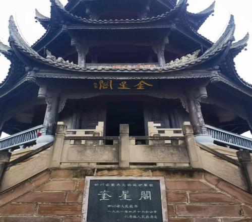 跟着网上的攻略逛仁寿。第一站是魁星阁。这是一座清代的木制建筑,建于奎星街东风山上。奎星阁由须弥座、阁身、宝顶三部分组成,阁身29米,为四重檐八面体攒尖式木结构建筑。现在是省级文物保护单位。