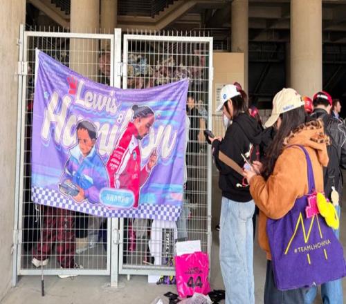 在赛场,大家也看到了非常眼熟的颜色应援。在上海多次获得分站冠军、粉丝基础最坚实的汉密尔顿,紫色旗子在主看台区域横跨七八个看台,他的粉丝应援会TeamLH也是历史最悠久的应援团之一。
